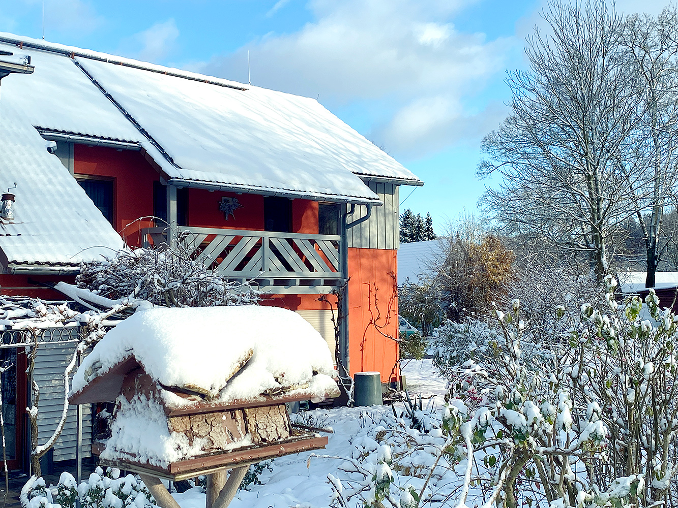 Unser Garten ist im Winter natürlich nicht nutzbar - außer zum Meditieren im Schnee!